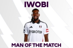 体育资讯4月6日讯 英超第31轮,富勒姆3-2战胜利物浦,赛后,英超联赛官方宣布,伊沃比当选为球迷票选全场最佳球员。